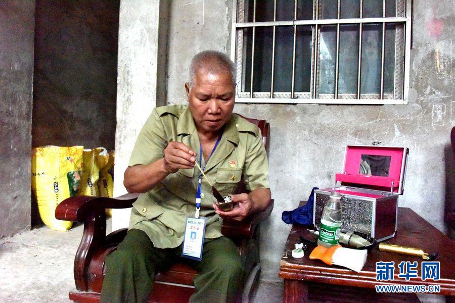 圖為劉日成在家里維護保養理發工具。(陳桂梅攝 拍攝時間:2022年11月19日)