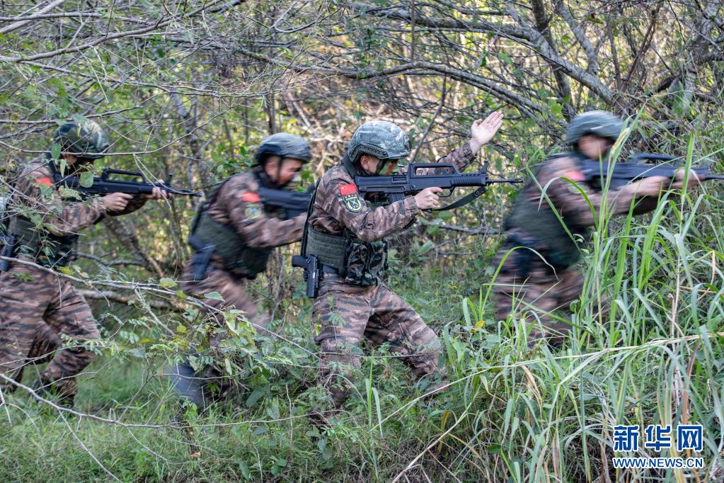 1月1日,武警廣西總隊防城港支隊組織特戰隊員進行捕殲戰斗演練。