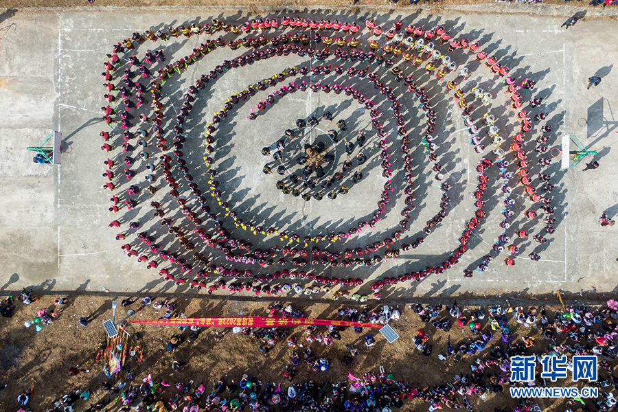 無人機航拍的苗族大型蘆笙舞。新華網發 龍濤 攝
