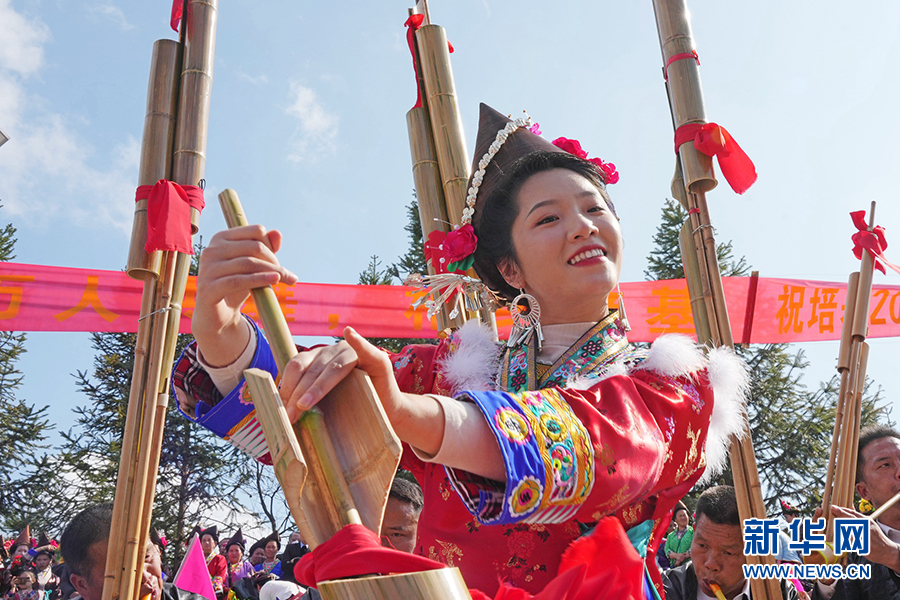 苗族女子在表演地筒舞。新華網發 龍濤 攝