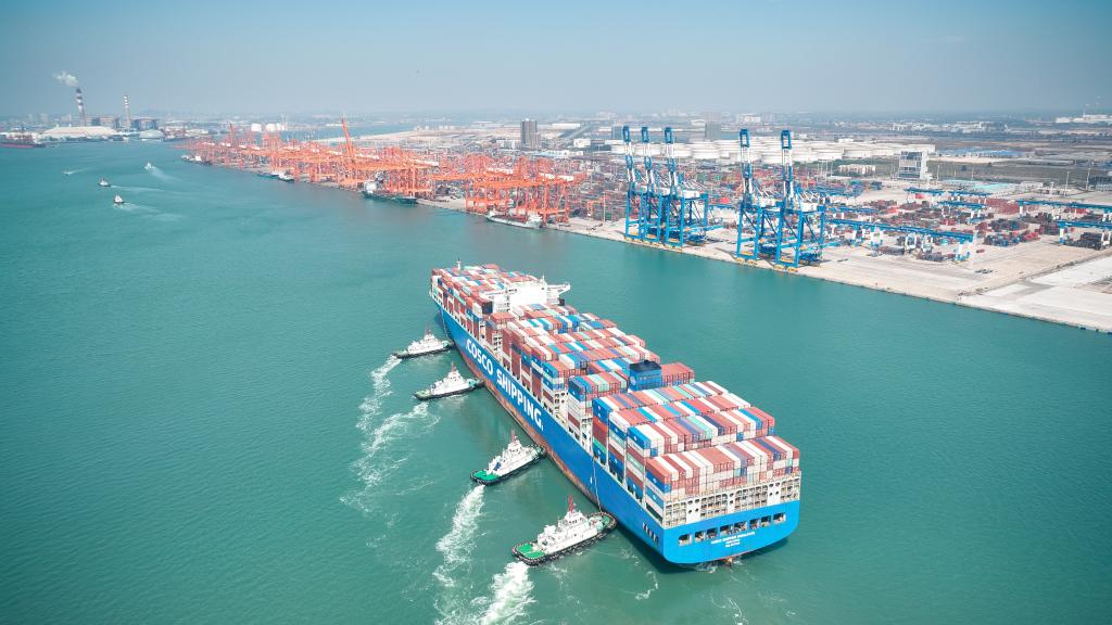 北部灣港股份有限公司生產業務部副總經理王曉介紹,近年來北部灣港口大型化、專業化、智慧化建設不斷加速,已實現集裝箱“船邊直提”“抵港直裝”服務,欽州自動化集裝箱碼頭裝卸作業能力大幅提升,實現15萬噸級集裝箱船舶靠泊作業常態化。(記者朱麗莉)