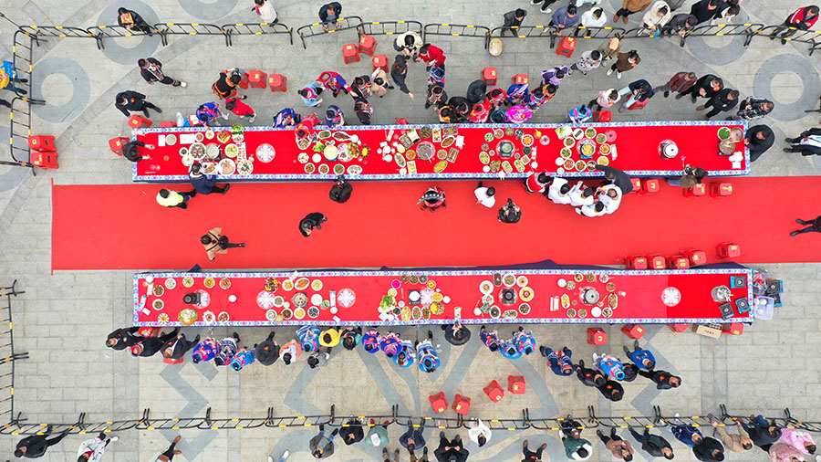 是你家菜香,還是我家菜征服更多人的味蕾?粽粑節還是一個美食的盛宴。社區組織了廚藝大比拼活動,伴隨著歡快的音樂,一道道色香味俱全、充滿美好寓意的菜肴從各家廚房拿到活動廣場,擺滿了兩條長長的桌子。大家圍著長桌以廚會友、以食為樂。當天,銅鼓舞、竹竿舞、山歌對唱等民俗節目也相繼上演。