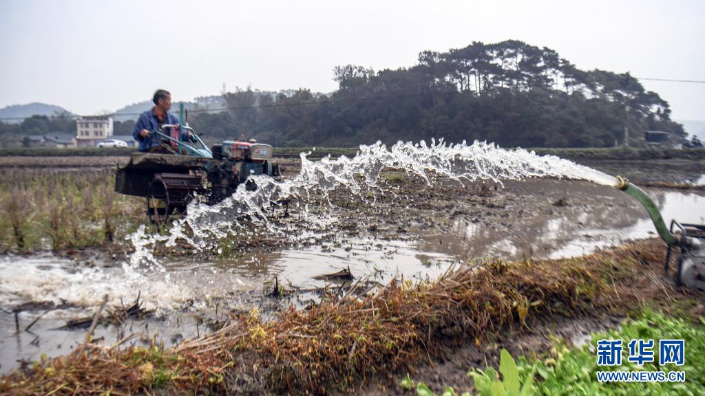 2月17日,廣西欽州市欽北區大寺鎮四聯村委那老村村民在抽水翻耕田地準備育秧。