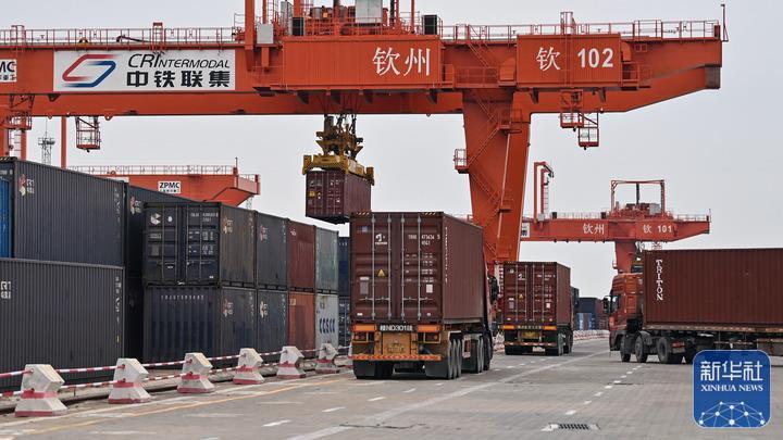 隨著西部陸海新通道的建設和RCEP的實施,廣西多地加快融入新發展格局。走進欽州鐵路集裝箱中心站,境內外貨物往來不斷,電子大屏上的物流運輸信息平臺展示著運量情況和主要貨物流向,海鐵聯運的貨物品名、數量等信息滾動顯示?!拔覀儼l揮智能智慧化集裝箱專業場站優勢,吸引國際國內貨源,有力地促進了陸海新通道班列與中歐班列的有效銜接,集裝箱辦理量不斷創出新高?!敝需F聯合國際集裝箱廣西有限公司副總經理王鐵成說。