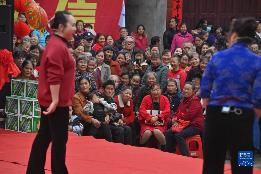 3月7日是廣西柳州市融安縣大將鎮龍妙村農歷二月十六傳統會期,龍妙村的婦女在觀看民俗表演。