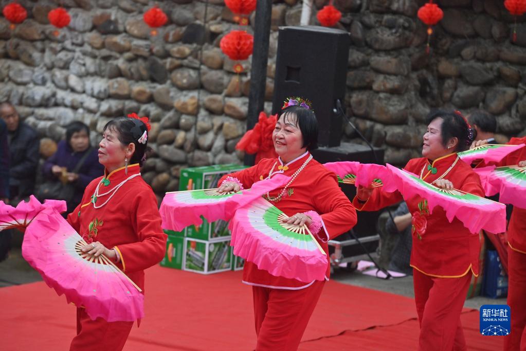 3月7日是廣西柳州市融安縣大將鎮龍妙村農歷二月十六傳統會期,龍妙村的婦女在表演地方特色的劇種“彩調”。