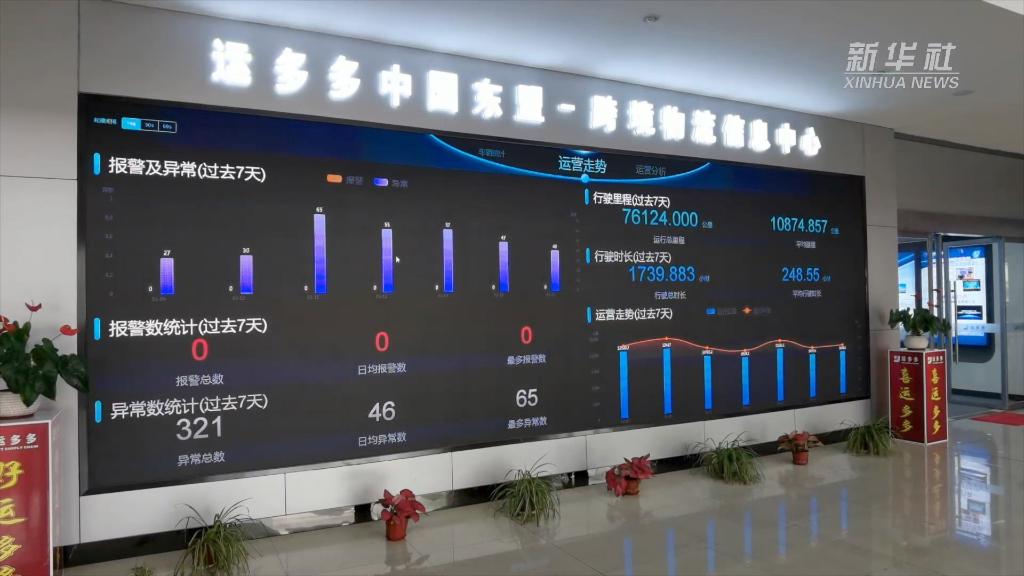 在基地大廳,一塊“運多多中國—東盟跨境物流信息中心”的大屏顯示著基地每一輛車的運行狀況?;刎撠熑私榻B,他們一站式提供中國—東盟跨境物流的數據集成和商業運營,極大地提高了跨境物流的運營效率。