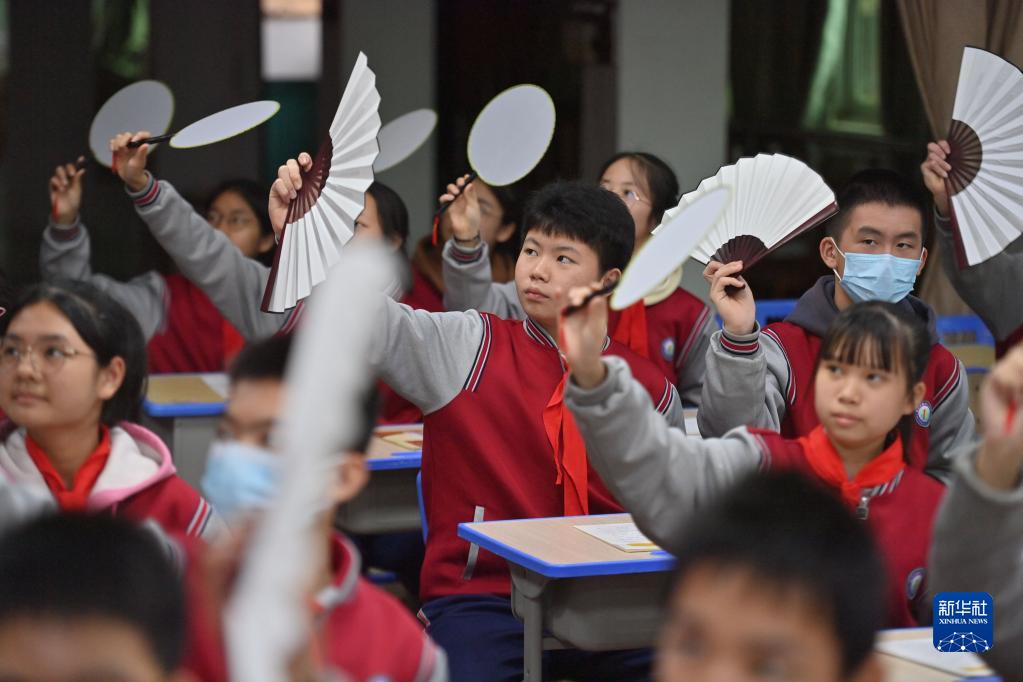 3月29日,在廣西梧州市第十一中學,學生們在學習粵劇。