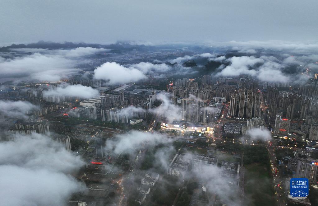 4月10日拍攝的雨后的廣西柳州市區景觀(無人機照片)。