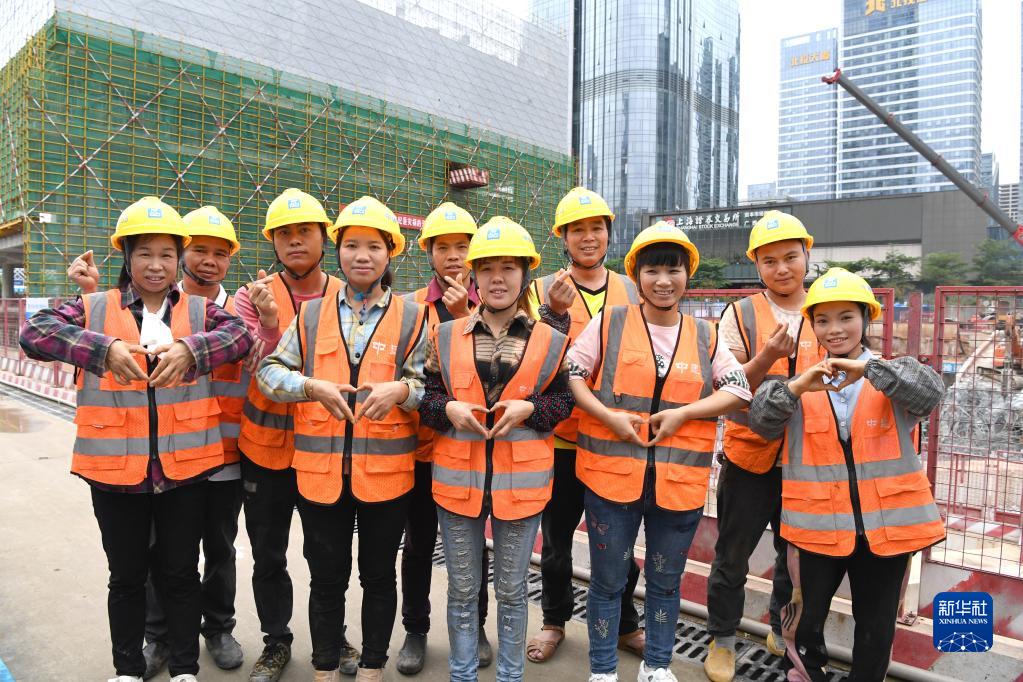 建筑工在廣西南寧市良慶區五象大道中建三局一公司南寧中銀金融中心項目建設工地留影(4月19日攝)。