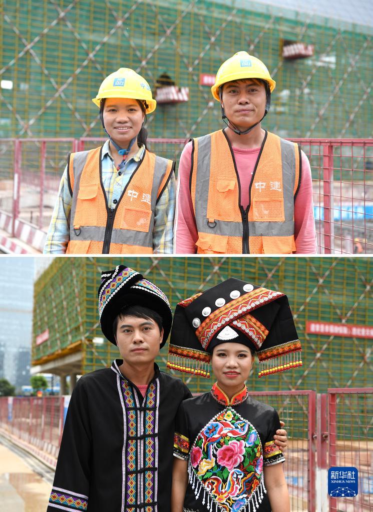 “壯族三月三”前夕,奮戰在廣西南寧市良慶區五象大道中建三局一公司南寧中銀金融中心項目建設工地的少數民族夫妻換上民族服裝,在工地上留影,以這種特殊的方式喜迎佳節。