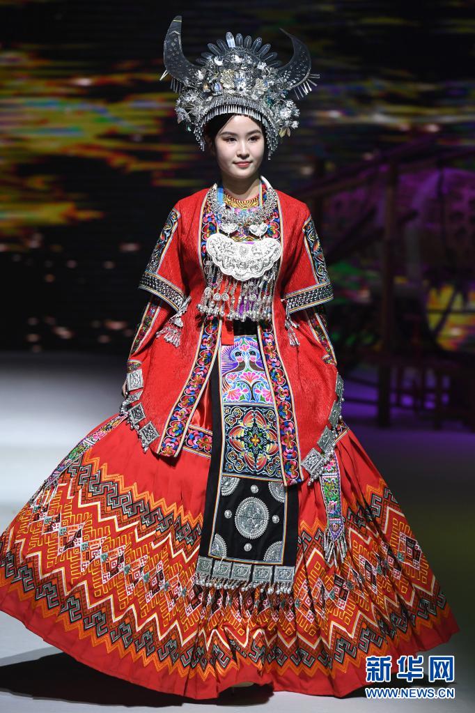 模特在廣西南寧市廣西文化藝術中心展示民族元素服飾(4月24日攝)。