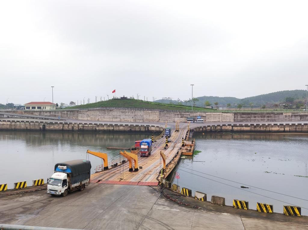 跨境貨運車輛通過連通中越兩國的北侖河互市浮橋(2023年4月12日攝)。新華社記者 朱麗莉 攝