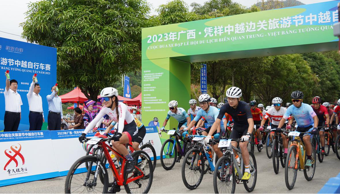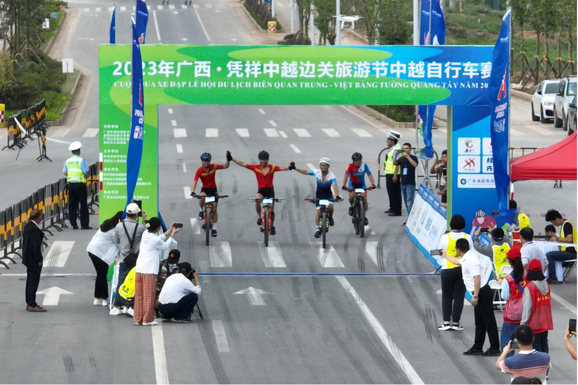 4月28日,2023年廣西·憑祥中越邊關旅游節中越自行車賽在憑祥舉行,來自中越兩國的224名自行車選手參加比賽。