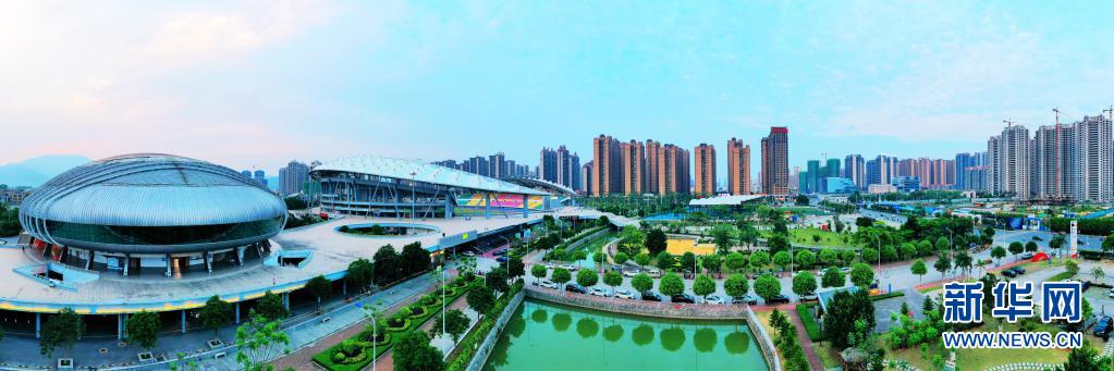 圖為貴港市體育中心城市新貌。(張慶杰攝)