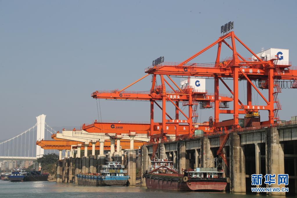 圖為正在作業的貴港港集裝箱碼頭。(張智榮 攝)