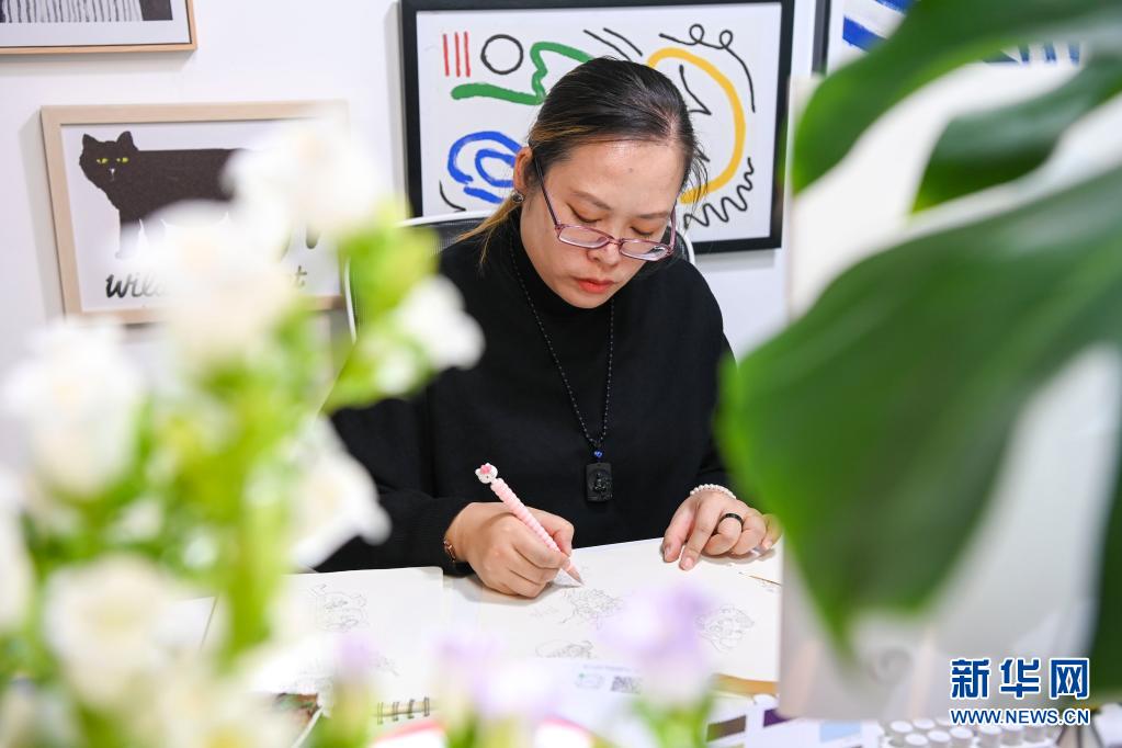 4月25日,劉思蔚在位于廣西桂林的工作室內創作。