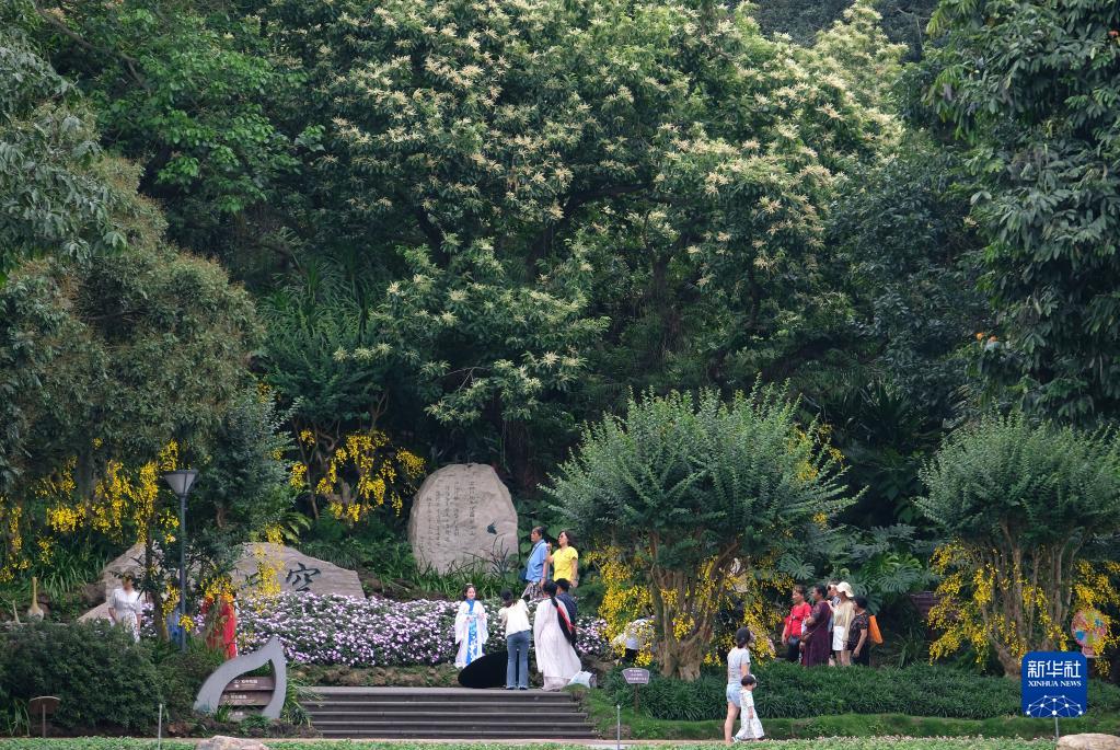 5月7日,游客在廣西南寧市青秀山風景區空中花園景點游玩。