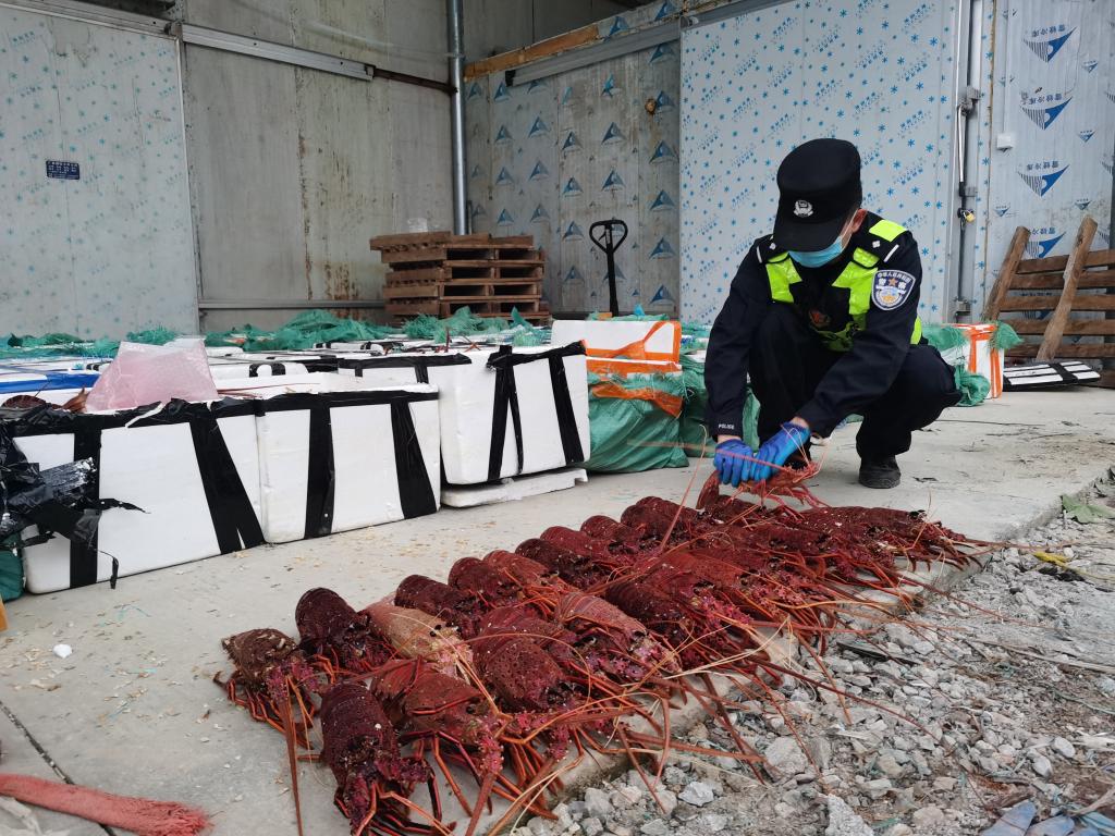 經民警清點查驗,現場92個泡沫箱內共裝有大龍蝦2000多只,總重量約2噸。初步估算,涉案金額約36萬元人民幣。