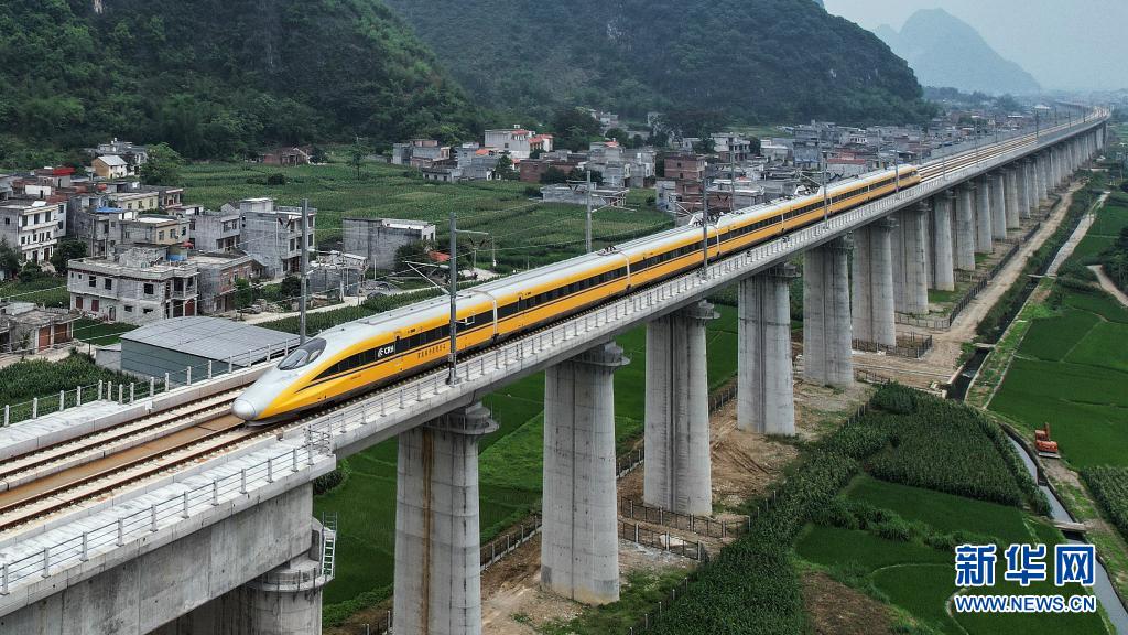 5月16日,高速綜合檢測列車駛出南寧東站。
