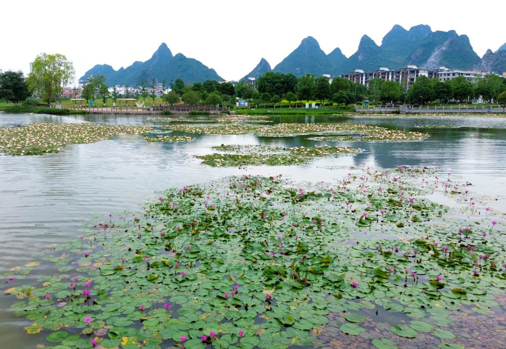 2023年5月8日在廣西賀州市愛蓮湖公園拍攝的睡蓮。CICPHOTO/廖祖平 攝