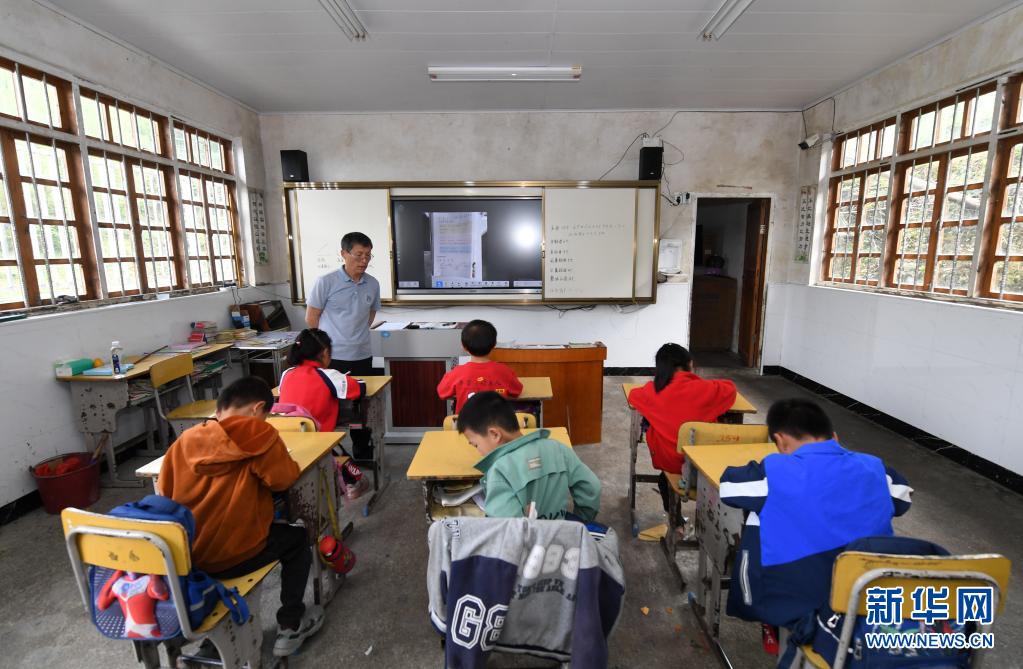 5月18日,在廣西靈川縣蘭田瑤族鄉深潭教學點,趙洪老師在給學生上課。